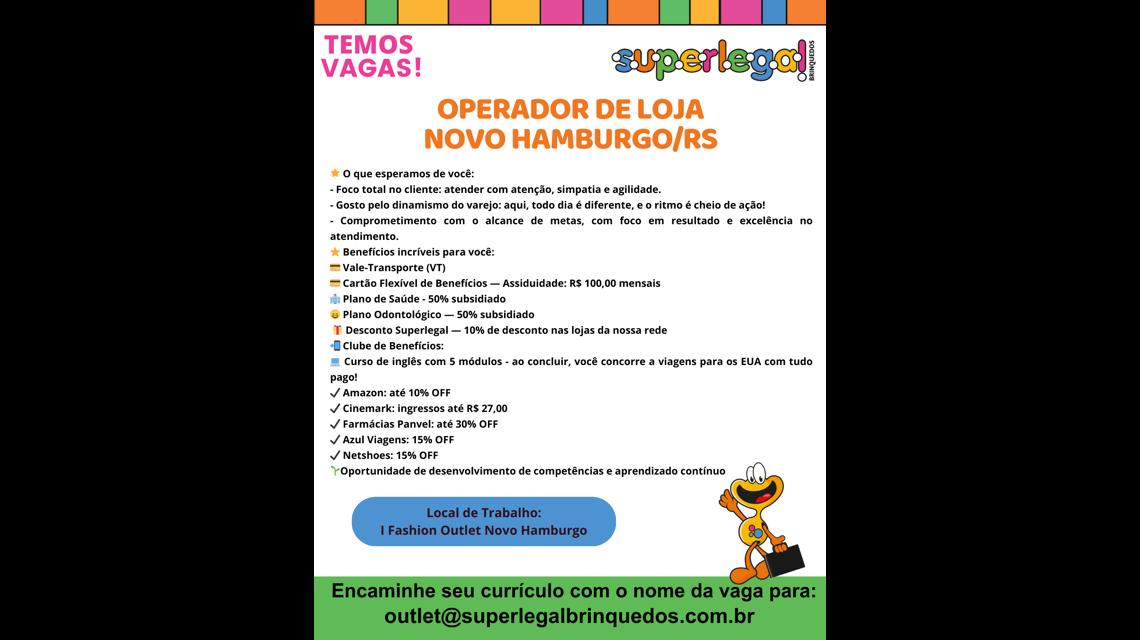 Local de trabalho: I Fashion Outlet Novo Hamburgo - BR-116, km 236 - Operário, Novo Hamburgo