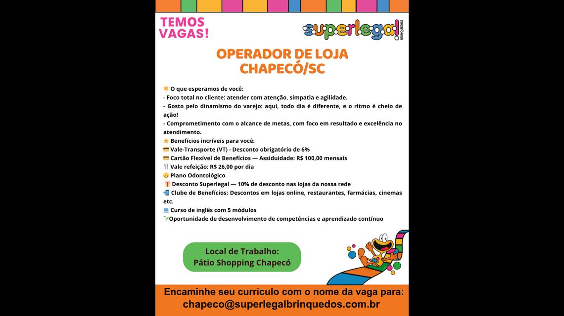 Operador de Loja/Vendas - Pátio Shopping Chapecó