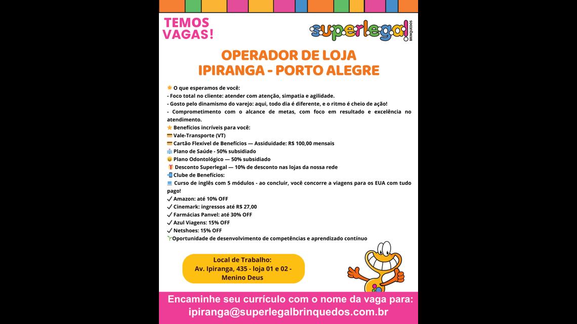 Estamos em busca de um(a) Operador(a) de Loja apaixonado(a) por atendimento ao cliente, com energia contagiante e vontade de fazer a diferença. Se você ama trabalhar em um ambiente dinâmico, cheio de cores e sorrisos, essa vaga é para você!